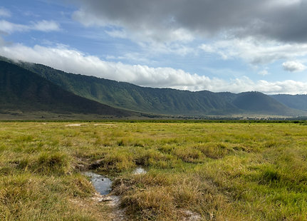 Ngorongoro Crater has a salt lake in the middle that attracts all kinds of animals.